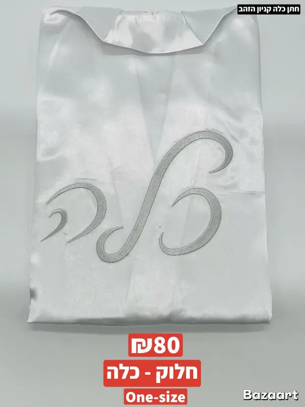 מארז 4 חלקים לכלה 100 אחוז כותנה חלוק מגבת ONE SIZE מגבת פנים מגבת ידיים כפכפים ONE SIZE